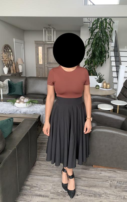 The quality of the fabric is good. It’s smooth and smoothing. Loved the gray color. I usually wear a 12 or L on top. Purchased this in an XL and it is very tight everywhere, across the stomach, chest and shoulders. I’m also only 5’3” and it was pretty short. Could potentially size up, but not sure it’s worth the hassle if it doesn’t fit again since I don’t have a local Macys.