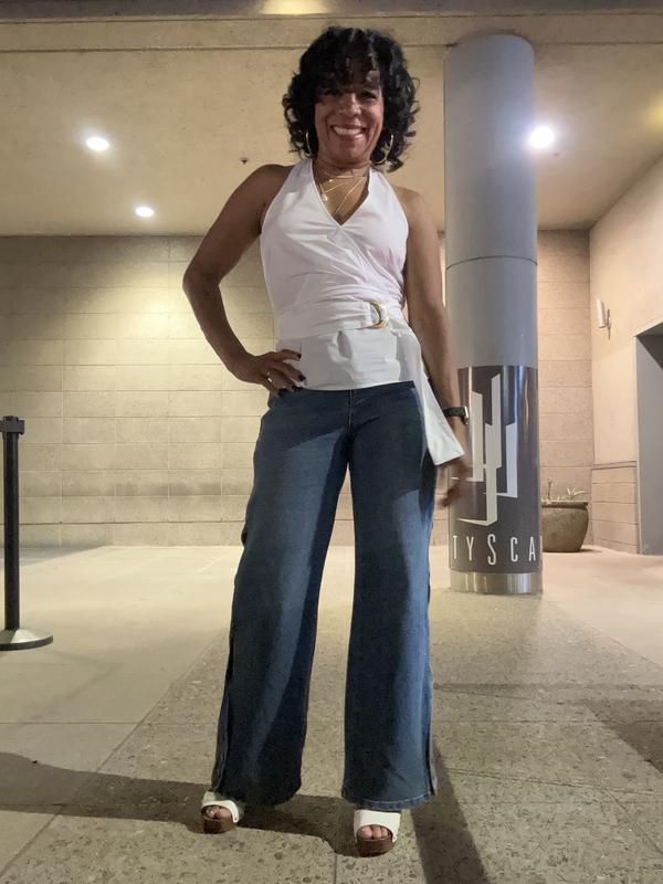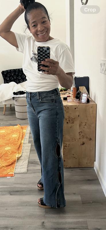 These jeans are very fun to wear! The cutouts are unique! I get a lot of compliments when I wear them. I have a size 27, which fit me a little tighter than than the model in the picture is wearing her's. Either way they look fabulous!