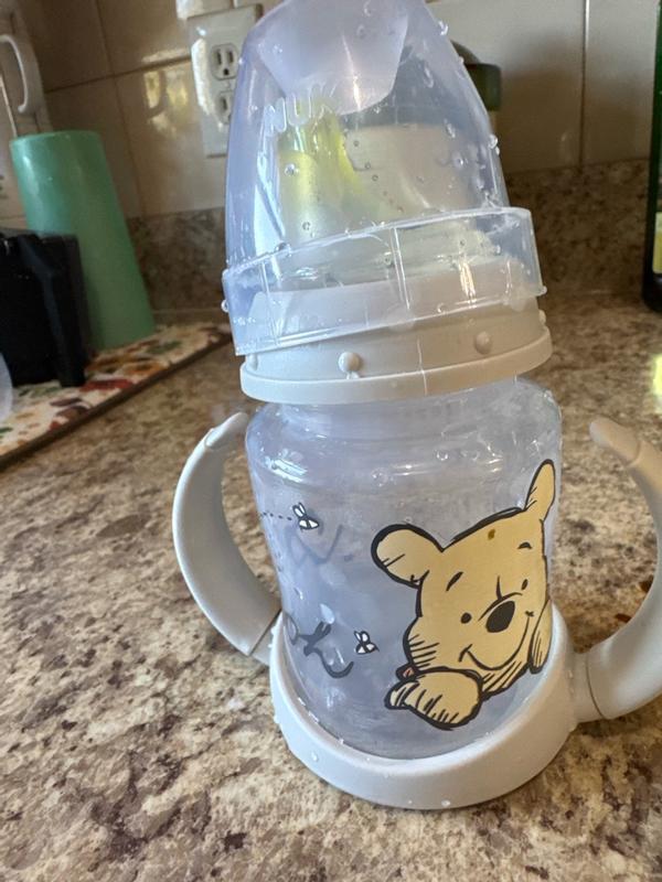 I like that is not heavy for my 6 months old to hold and I can give him water or juice and he’s ready to drink it. He holds it easily and he doesn’t have a hard time swallowing. I like it I can choose any cute design I want and it’s easy to clean and to change the nipple if you want. I recommend 100 %