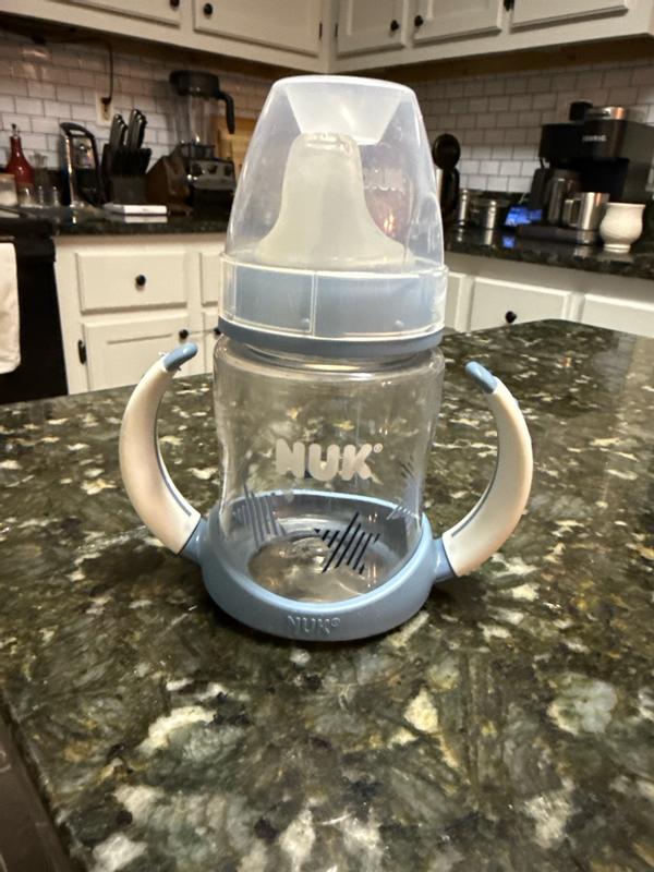 I started with Nuk bottles, and fell jn love so naturally the next best step was to use the Nuk learning cup! So many cute designs and my son loved them!