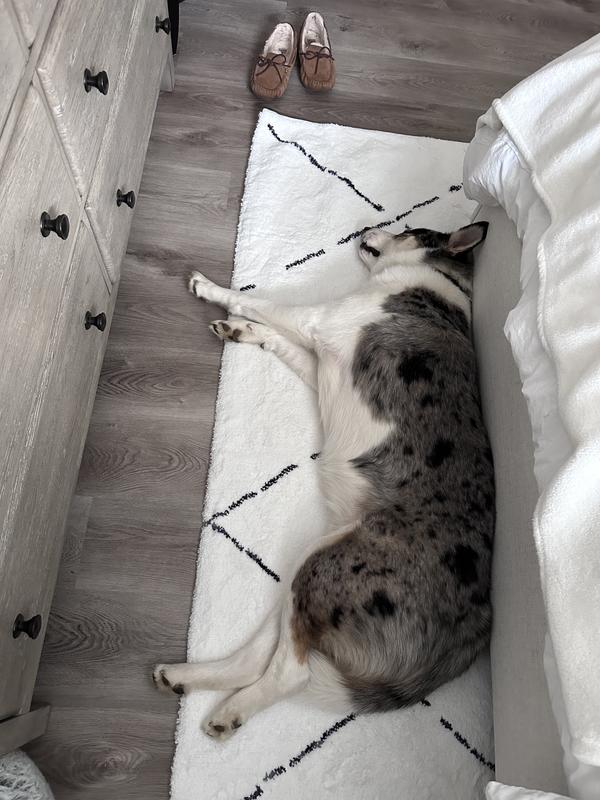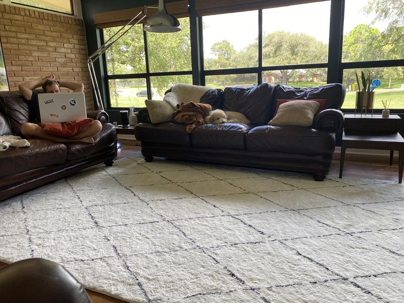 I love this rug! It's so thick buttery soft, like a cloud. The kids made "snow angels" in it. The white is a stark true white. I really needed a 9x12 and preferred a darker color, but I snagged the 6x9 white moroccan for an amazing discount. I don't regret it at all! It's too small under my king, but I plan to put a 9x12 base under to balance it out.