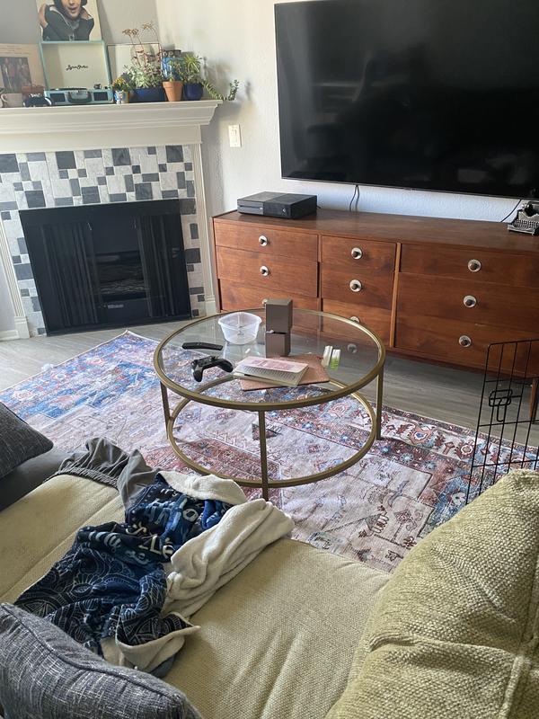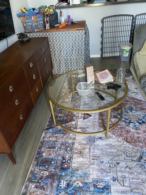 This washable rug is a great way to get the look and feel of something vintage or oriental but without the fear that dogs may ruin your rug! While we have not washed it in the washing machine yet, cleans very easily with spot cleaner