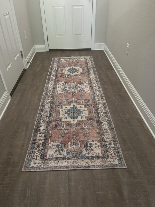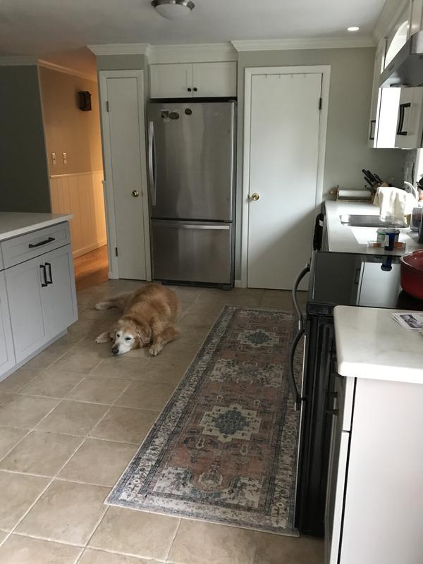 I purchased this runner to bring together colors in my new kitchen and I could not be more pleased! My cabinets are warm white and a grayish green. My backsplash and countertops have a lot of cream and grey and the walls are “dune grass.” All are very neutral and I needed a pop of color. This rug is just beautiful and it’s washable! I have several other much more expensive washable rugs and this equals them in color, pattern and overall look. I have been getting lots of compliments on it!