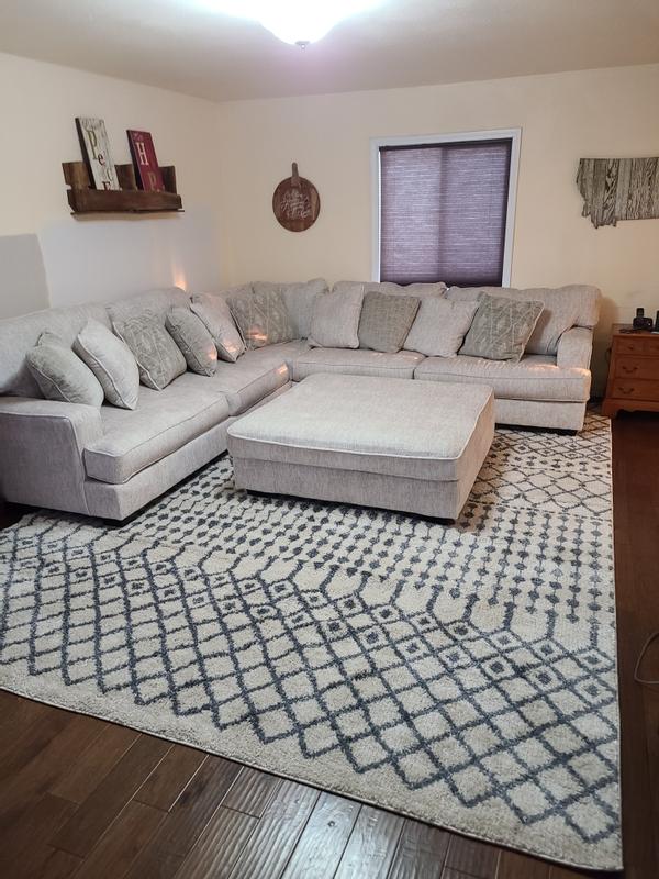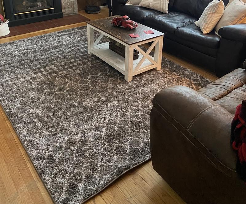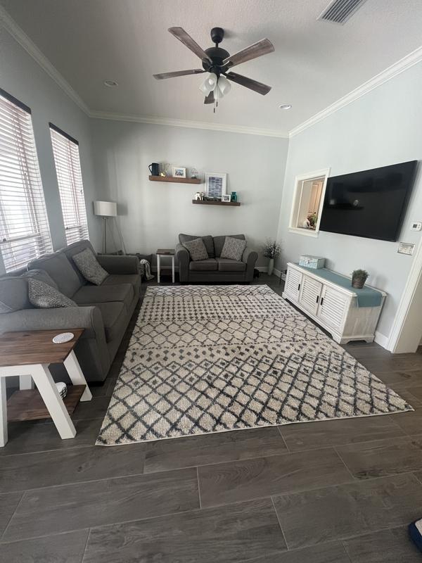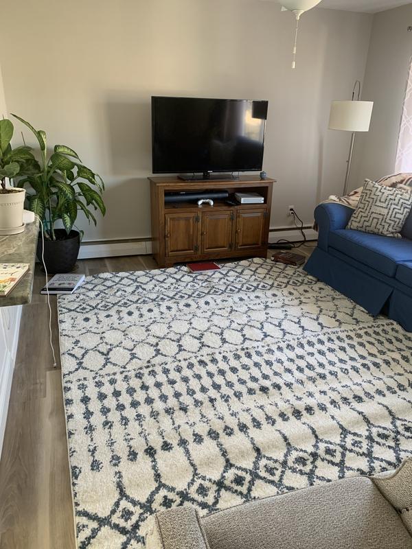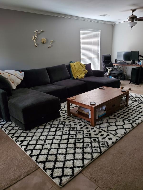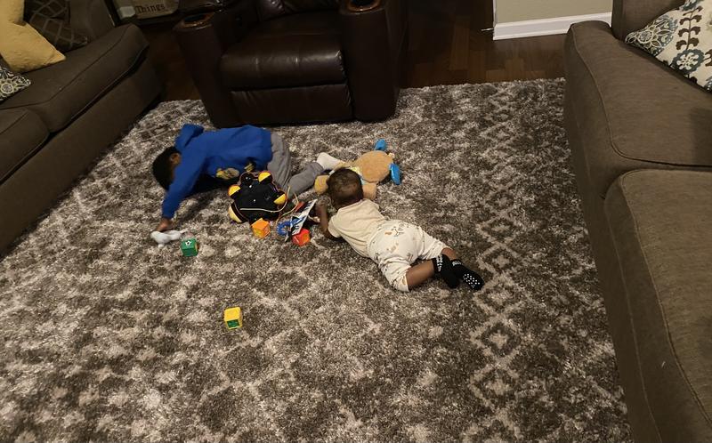 Love this oversized rug, which fits well in our living room! We appreciate how soft and durable it is with a household full of kids and four-legged family members!
