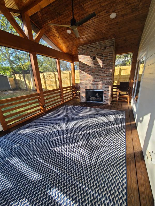 We needed a large outdoor rug to cover a large portion of our outdoor patio. This rug looks and feels perfect under our feet. Added bonus, the dogs love taking afternoon naps on it!