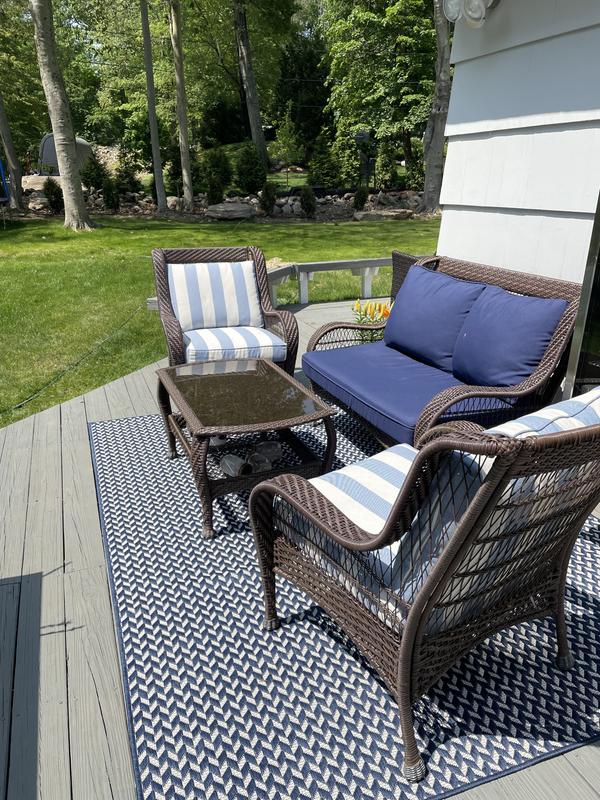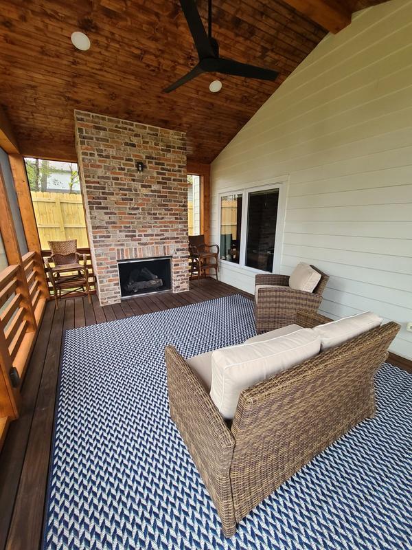 Love the rug pattern, gives some visual interest with being too overwhelming in the space. Using on a screened in porch so hoping it lasts for a long time!