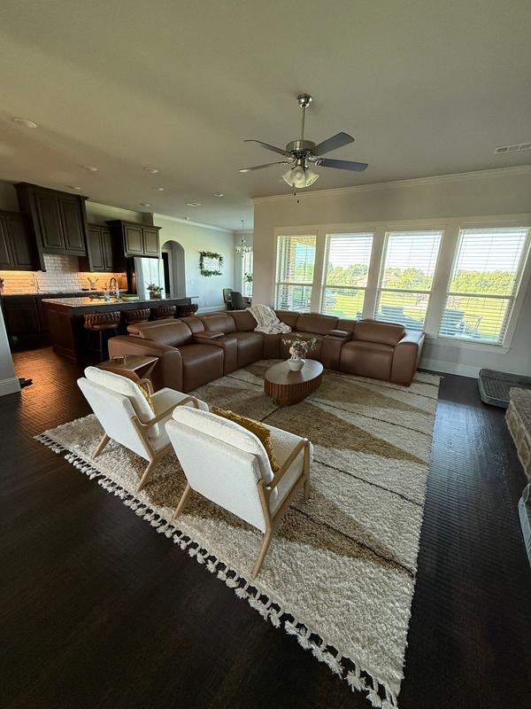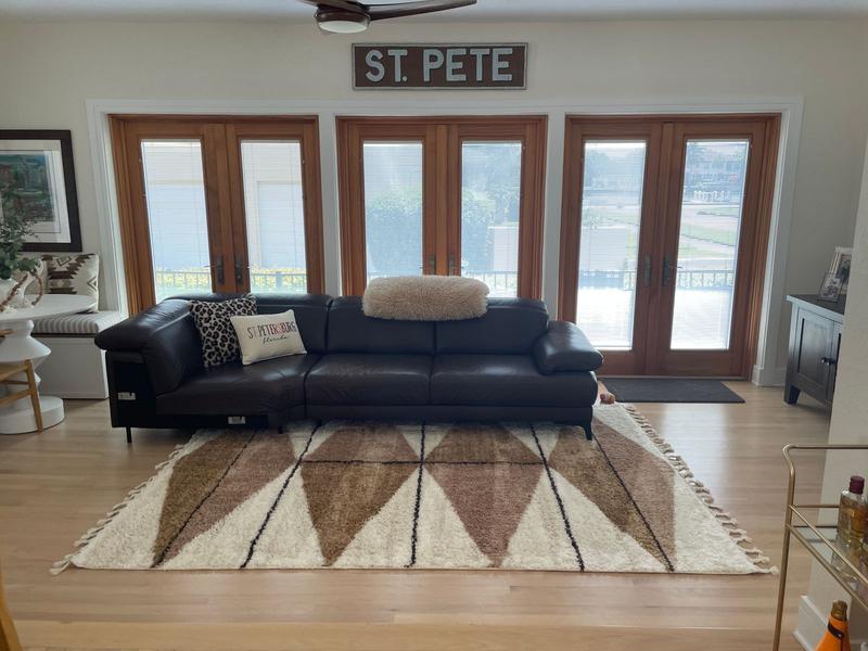 Great fit for our tv room . Color was slightly unexpected at first but once the rug settled it turned out beautiful light tan & soft khaki shapes and a soft quality feel.