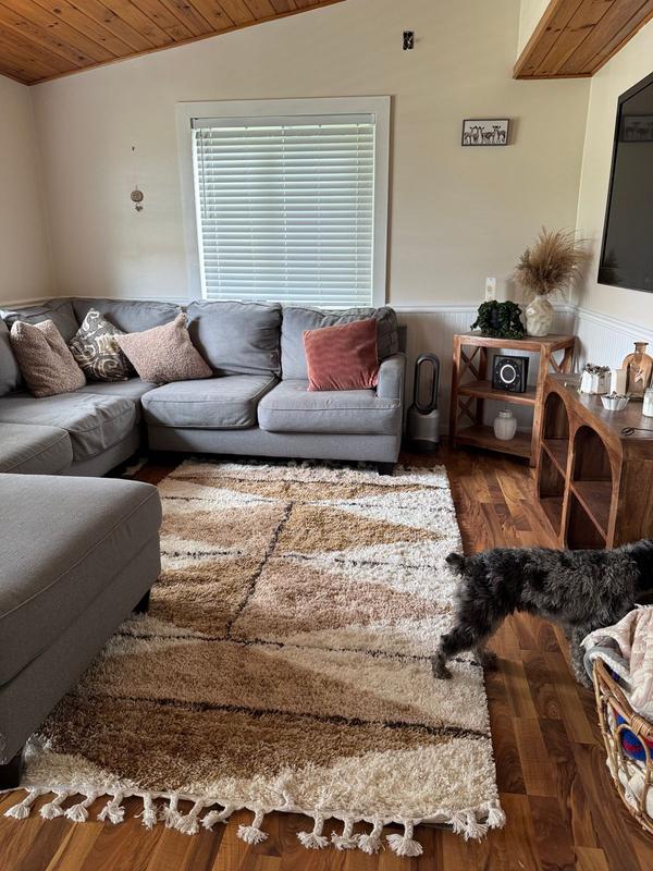 Was expecting more of a tan brown, but it’s almost a golden brown color. I will say I am alittle disappointed. Wish I would’ve maybe gotten a different rug, or the rust color. Not plush at all, even with a rug pad.