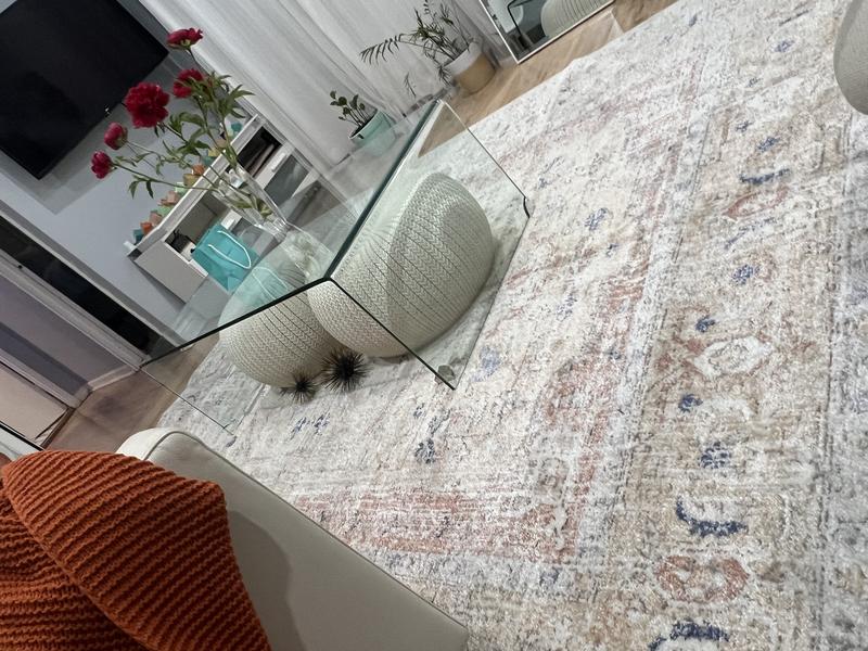 We bought this rug in Oct 22, and it looks absolutely awful now. We just rotated it, and I was shocked at how badly faded and worn down looking it has become in not need 18 months time. The fibers are flattened and threadbare, and the color- which was supposed to look a bit faded, is nearly gone. It is really disappointing for something that was not inexpensive. We have 3 kids and no pets, and do vacuum regularly.