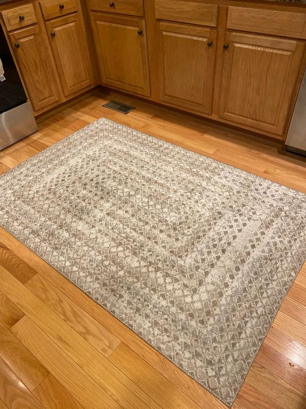 This rug us outstanding in my kitchen. The colors are muted and blend nicely.it will probably not show dirt as fast. Well made. Very pleased.