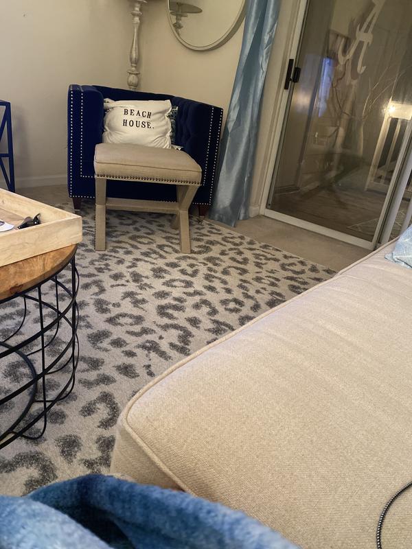This rug is very thin and low pile for the money. I love the look of grey and leopard but was expecting a higher quality product.