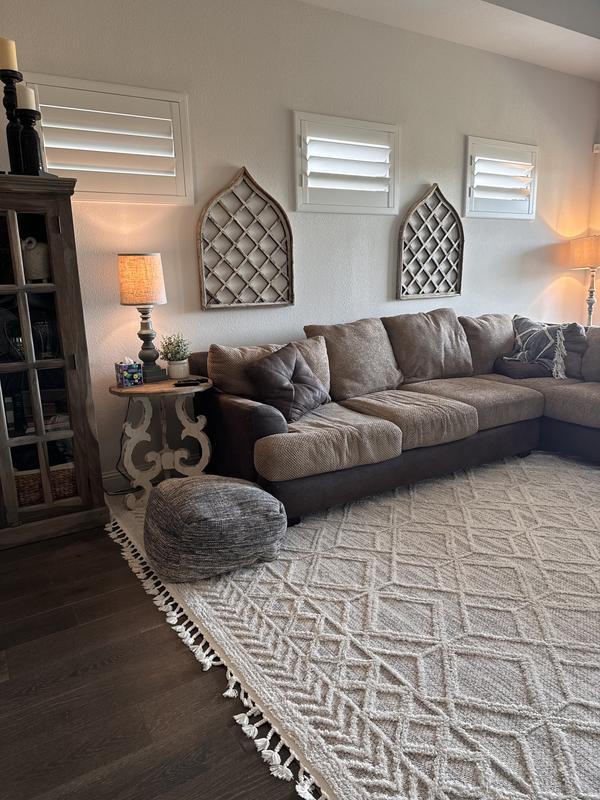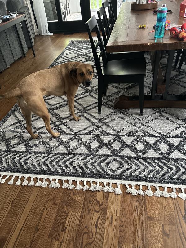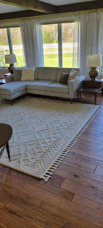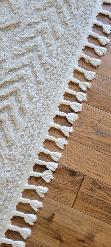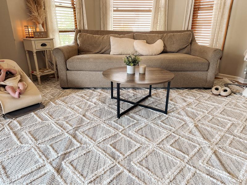 Absolutely obsessed with this rug! I now have 2 in my house- the gray one & ivory! They have the perfect amount of details but are simple enough to keep things minimalistic! They vacuum so nicely too! As a mama of four that is very important to me!