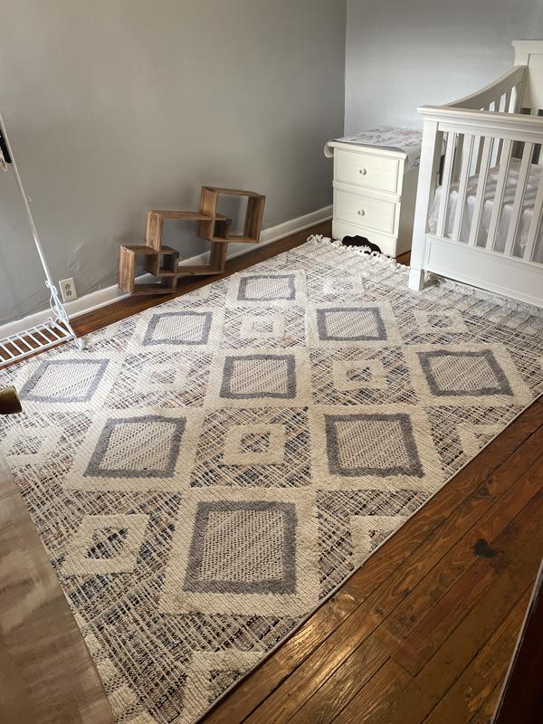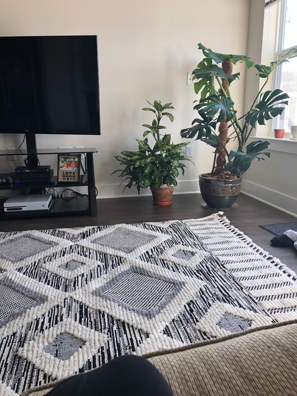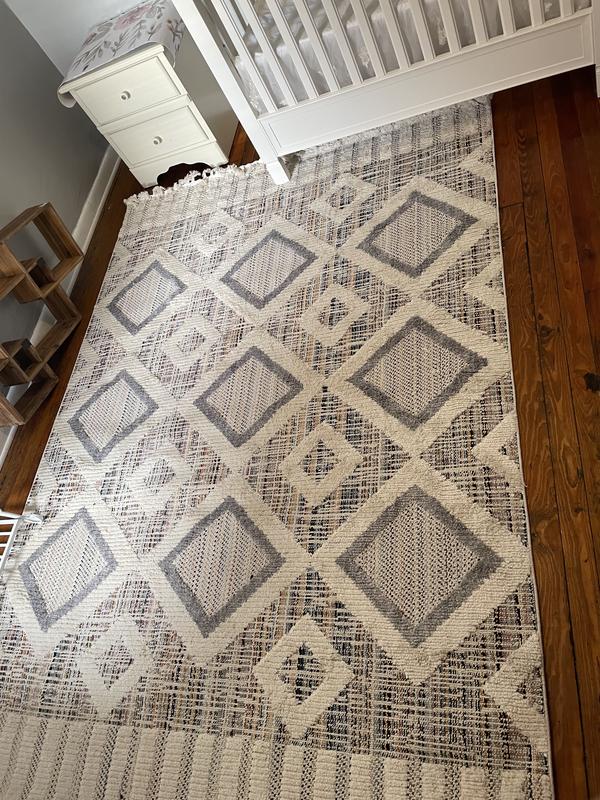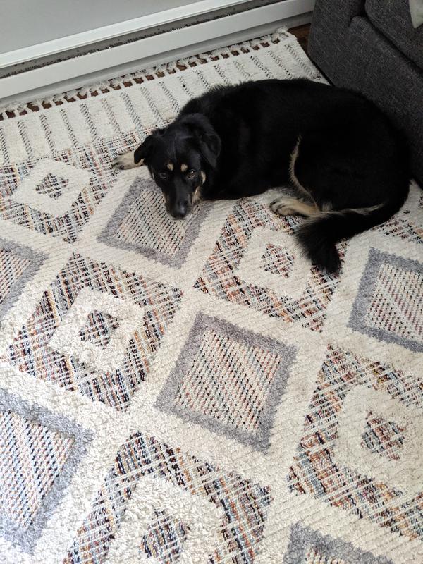 This is a good rug. I'm happy with the size and look of it, but the colors are incredibly muted and do not look anything near as vibrant as the photo. From a distance, you cannot even tell that the rug has colored threads woven in.