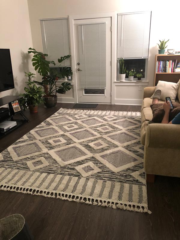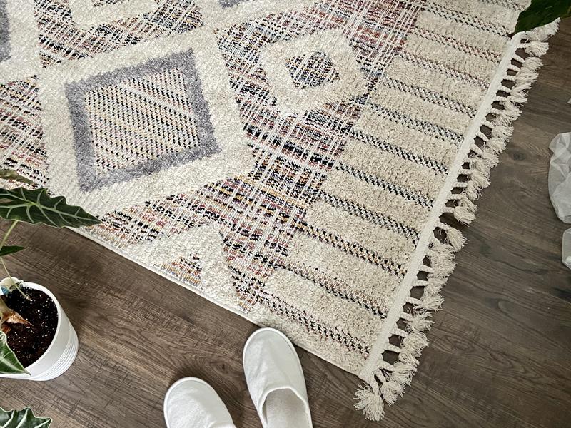 I have a smaller apartment & was looking for something affordable & unique with a bit of shag. I was worried this size would be too small (although sizing up would be too big), but the 6'7x9 fits perfectly under my 90" sectional. As many other reviewers have said, this rug is so SOFT! A rug pad would definitely elevate the feel of the rug, but for now, I don't have one & it's fine. It matches perfectly with my apartment & I love the color details. I purchased the "pink," which as you may see from the pictures is not overpowering, but lends a nice tone to the overall palette (there are blues, yellows, coppers, grays & other colors woven in). No issues with shedding or chemical smells. I should note this is not placed in a "high traffic" area, so not sure how it will hold up, but I don't imagine it will deteriorate quickly. That said, this rug gives my home a cozy feel. I am pleased with my purchase & would recommend!