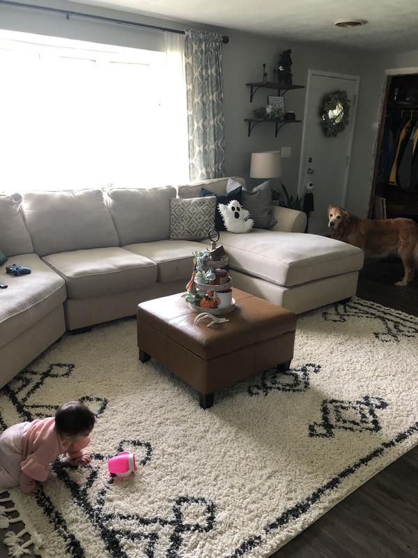Large (8x10), affordable, and puledl our living room together with a modern + cozy feel. V happy with my purchase.