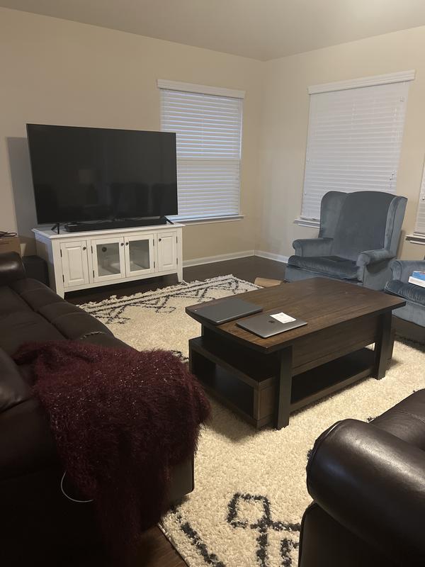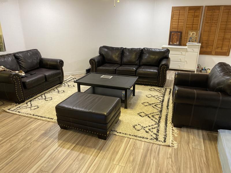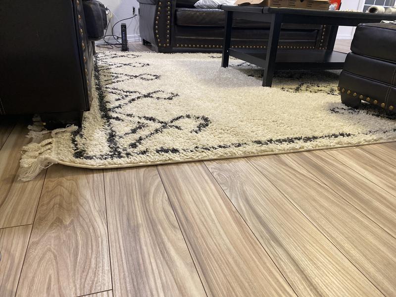 Rug is perfect. I got the off white one and it’s been easy to keep it looking clean. Nice and thick. Kids, boyfriend and pets all love it. Looks great too.