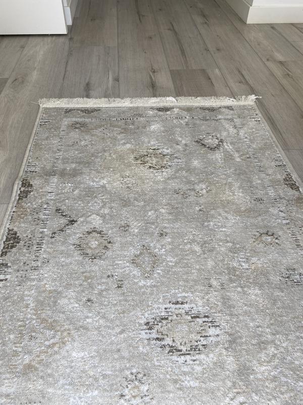 This is my third purchase fir this rug. It’s very neutral so works in a lot of settings and very thin. Only issue is that it is very difficult to get it straight and it needs to be “ ironed “ to get wrinkles and creases out .