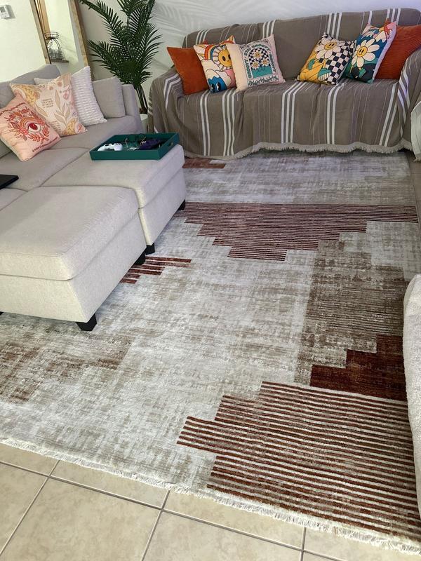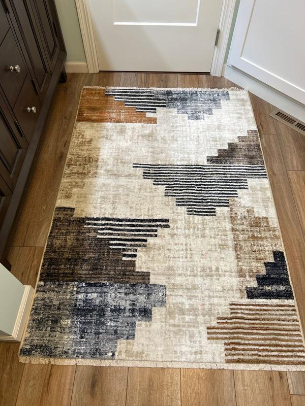 I was a bit worried when I ordered this rug but I love it. The colors were exactly as portrayed online and I love the graphic design providing a more modern aesthetic to my bathroom.