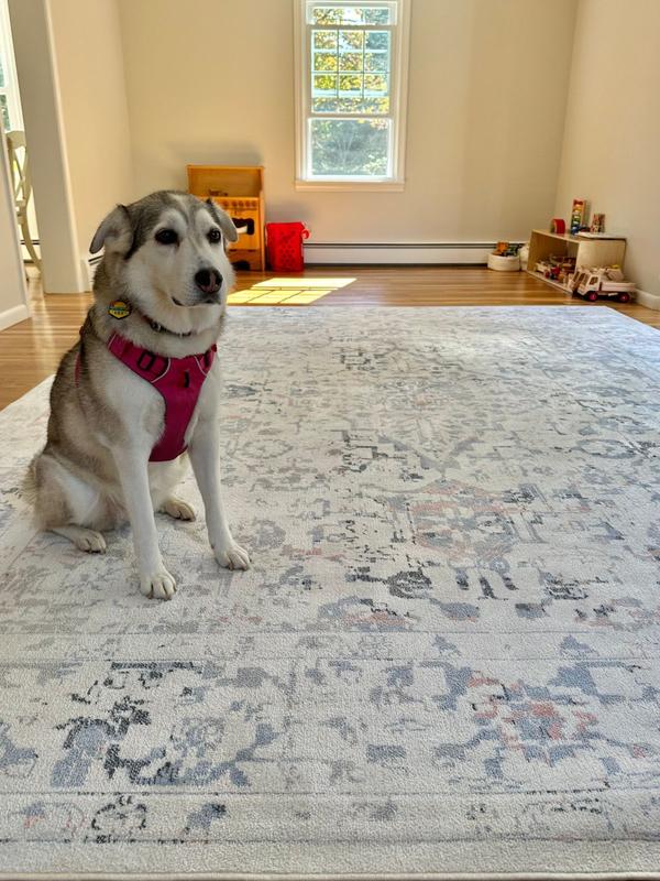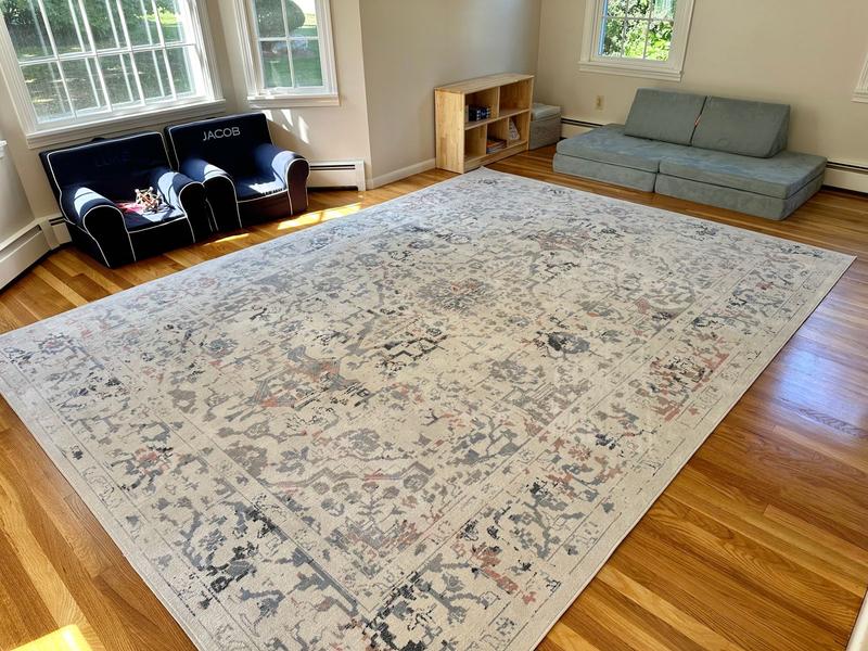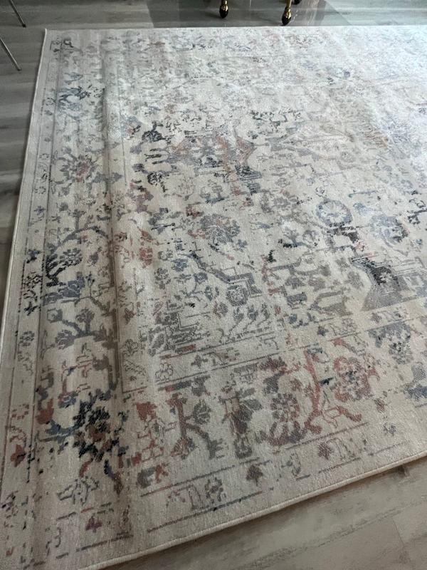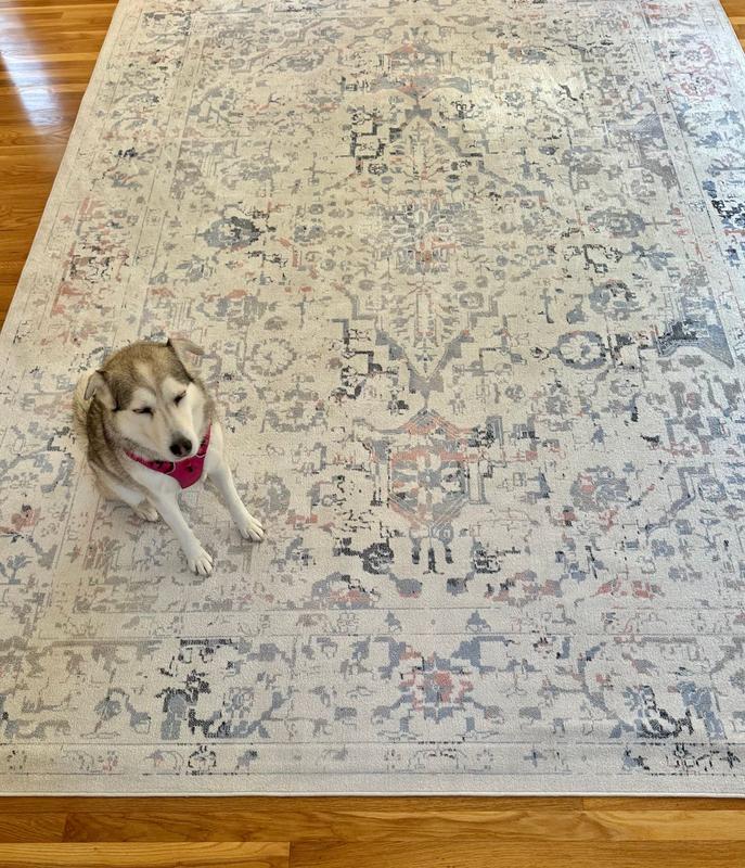 I love the softness of this rug. The colors are not as I expected. I expected more ivory and beige with blue, but what I got was a lot of white space and pink. I am not a fan of pink.