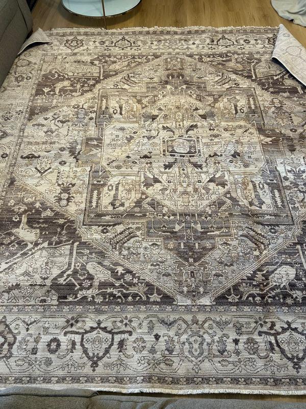 The rug itself is great quality, soft, tied well, lays great. However, i ordered this particular one because it had alot of grey in the picture. But upon receiving it I see that it mostly has browns with very little grey. I think an update for pictures needs to be done. I’m going to have to order a different one to go with my furniture.