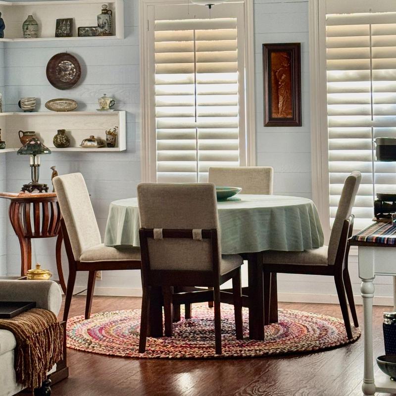 Decided to switch from an 8’x10’ rectangle to an 8’ round rug for a different look- I love it!