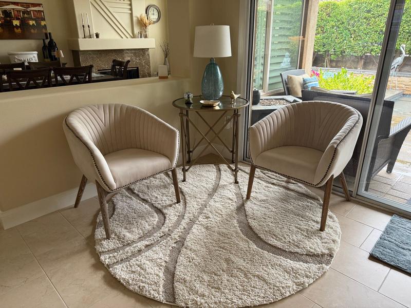 I love the soft cream color of this rug—it instantly brightens up my living room and makes the space feel cozy and elegant. The neutral tone goes with everything, and it looks much more expensive than it is. The pile is soft underfoot but not too thick, so furniture sits nicely on it. My only minor complaint is surprisingly (10x14 rug) arrived in a box and not rolled, so you can see the wrinkles still needing to come out. But a beautiful, versatile rug that adds warmth and style!