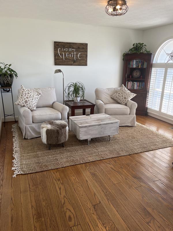 We love the bumpiness of the weave in this rug - feels sturdy under our feet.
