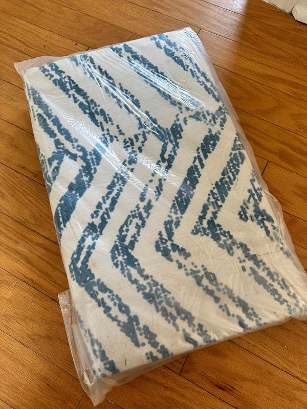 The chevrons are much bigger so there’s a lot more white space than in the photo. It seems like they resize the pattern image on the larger rugs instead of cutting a larger piece from the same fabric as smaller rugs. It’s serviceable but definitely disappointing