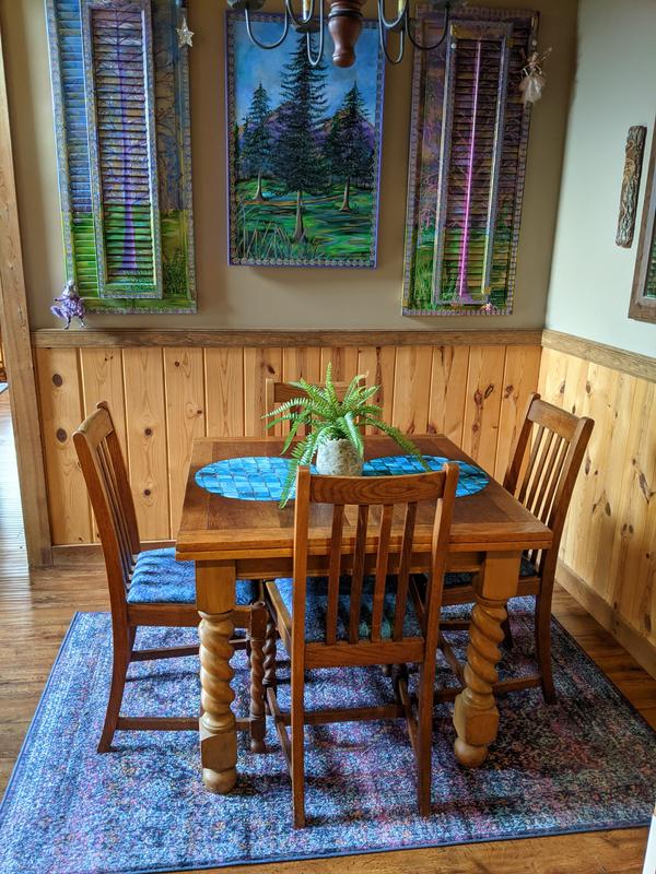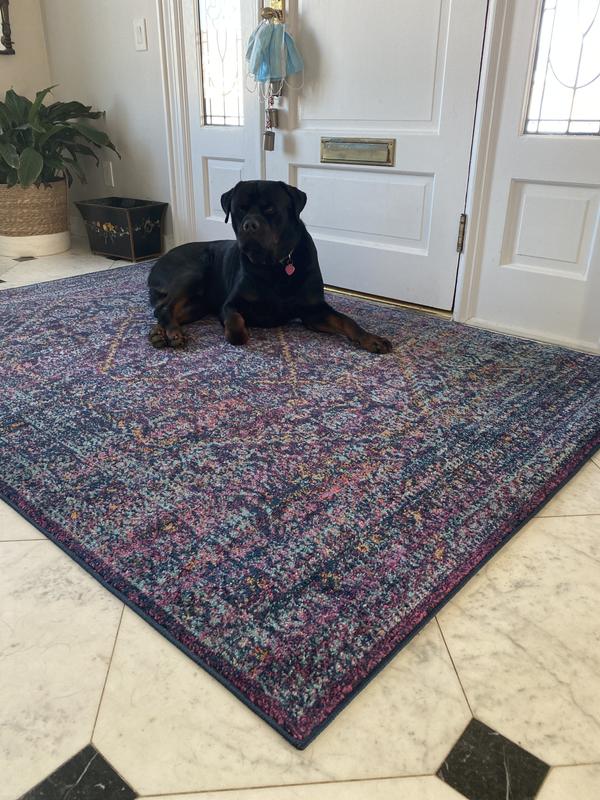 I put this rug in the foyer. The colors are beautiful and calming. Everyone loves the rug.