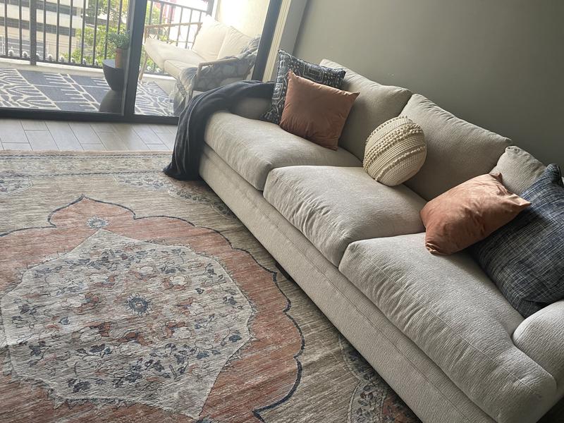 Love the rug and only giving 4 stars because it's much lighter in person than the color shown online. Still beautiful though and great quality for the price!