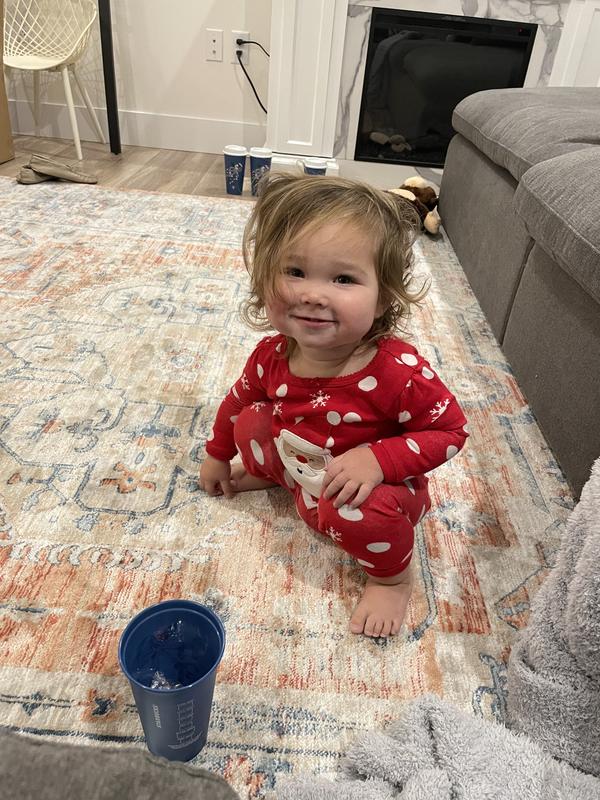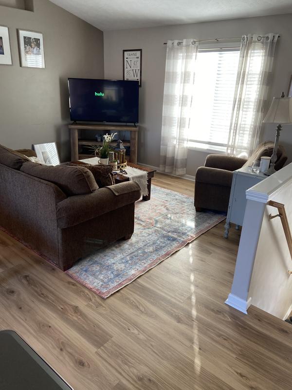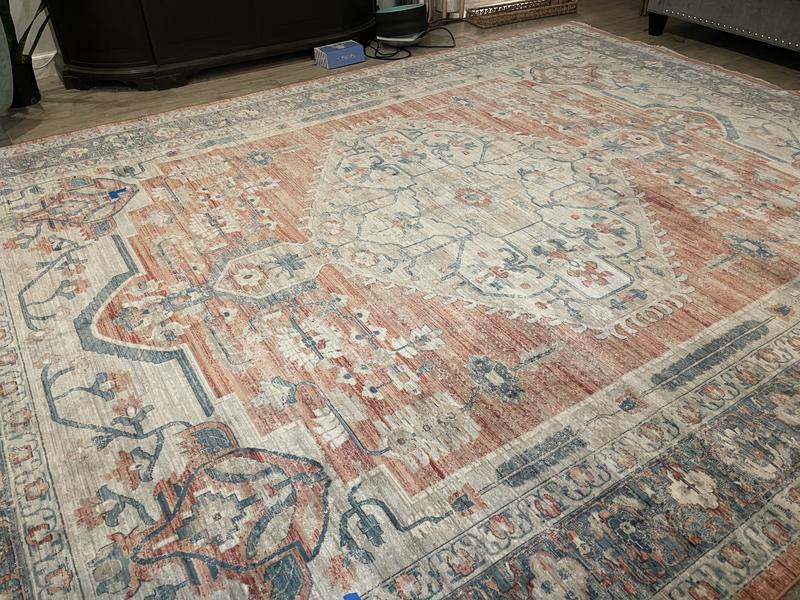 It’s a beautiful rug, looks amazing in my neutral living room. Some reviews said it looks different depending on the angle you’re looking at it which is true. One is lighter/coral one is darker/rust. I placed it down the way I wanted to see it when walking into the room.