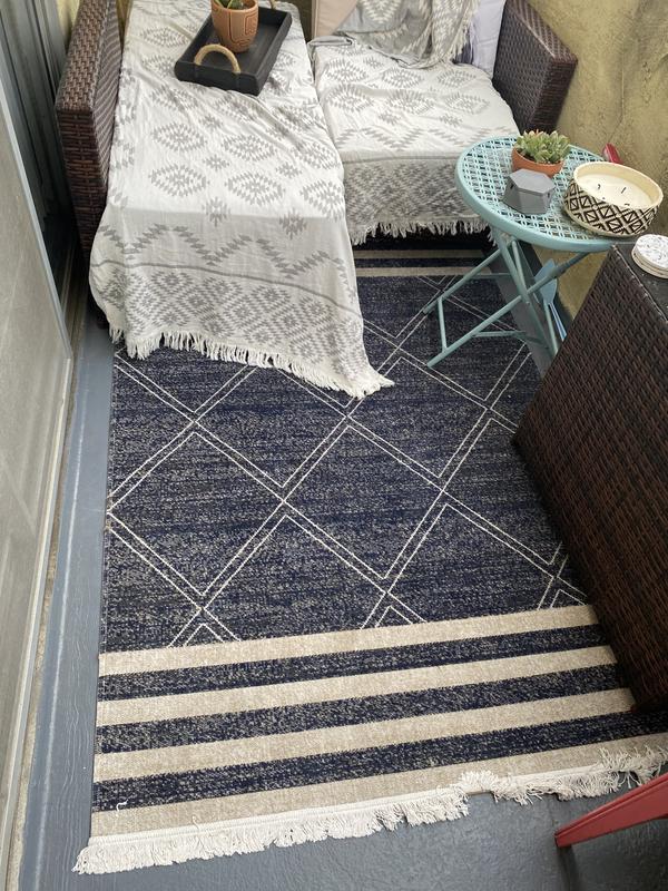 Brunch diamonds and stripes fringe indoor/outdoor rug