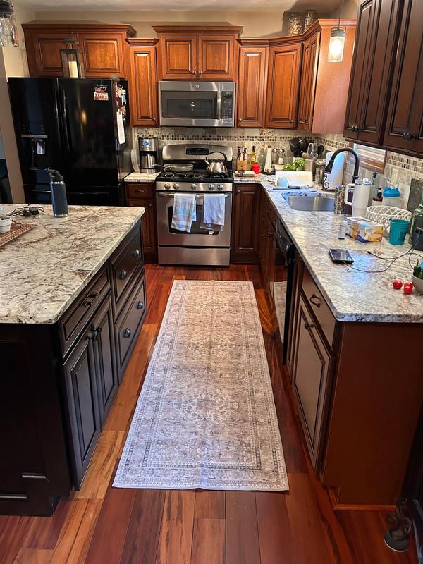 Great price & beautiful design all throughout rug (no mismatched shape or design) Love the color and it has a soft feel. Bonus it’s washable!