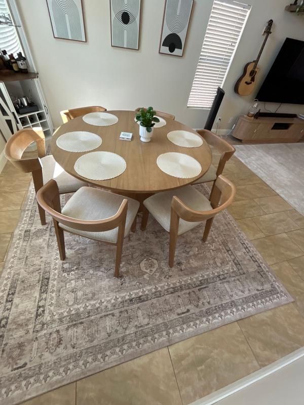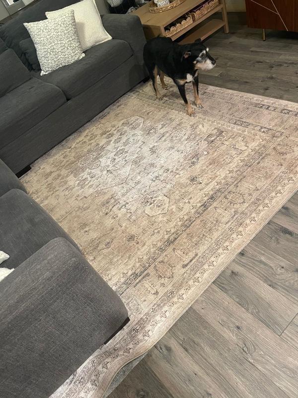 If you have pets do not buy this carpet! I purchased an 8x10 for our living room. I have an Akita who loves to run around the back yard and track in dirt. This carpet does not withstand dirt or mud and will discolor VERY fast. In the photo you can see exactly where my coffee table is. That’s how discolored it got. No worries though, it’s a washable rug - psyche! Doesn’t fit into a standard washing machine well enough to actually get clean and get the dirt off. I will now have to take it to be dry cleaned every few months if I want it to look halfway decent. Was a total waste of money and I’ll be purchasing a true washable rug elsewhere that can hold up to animals and wear.