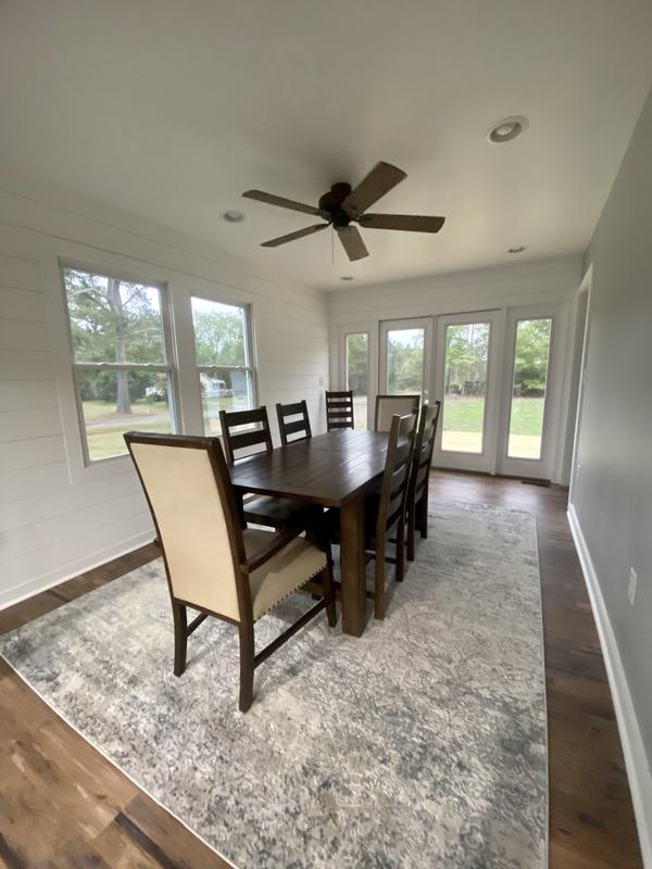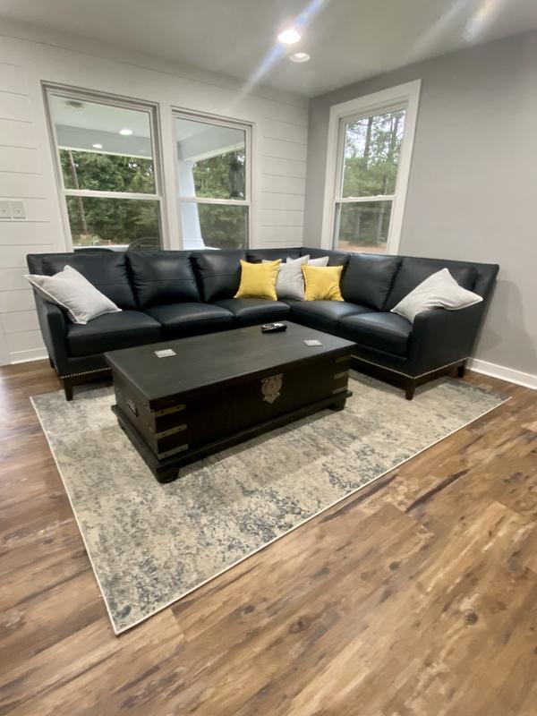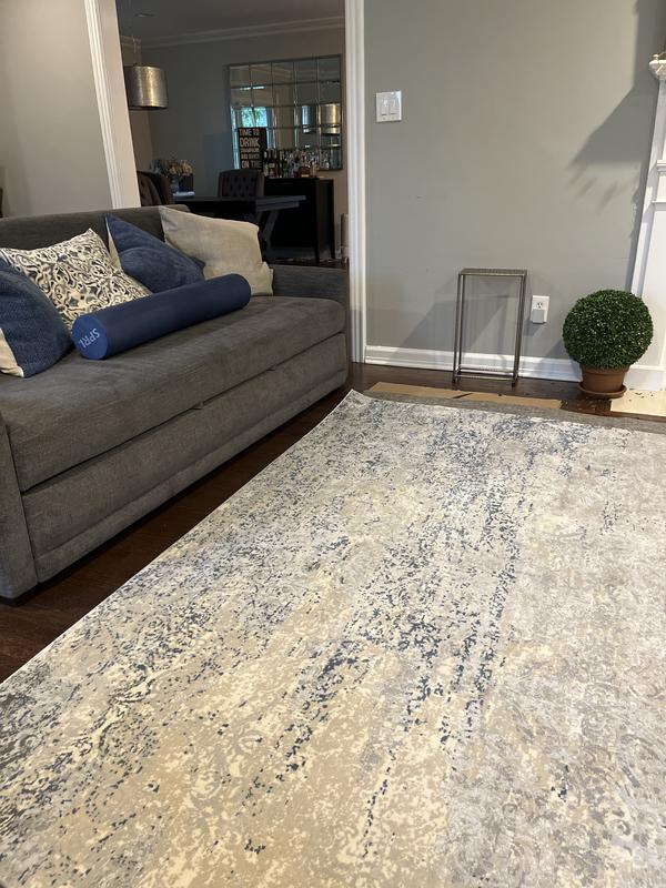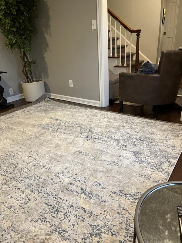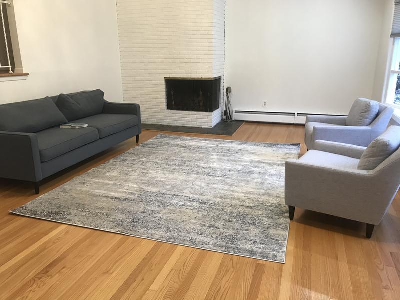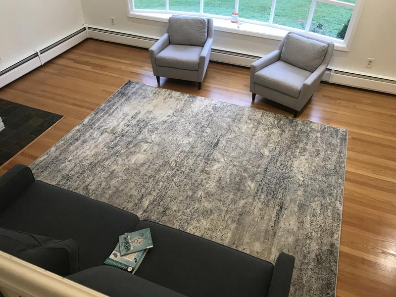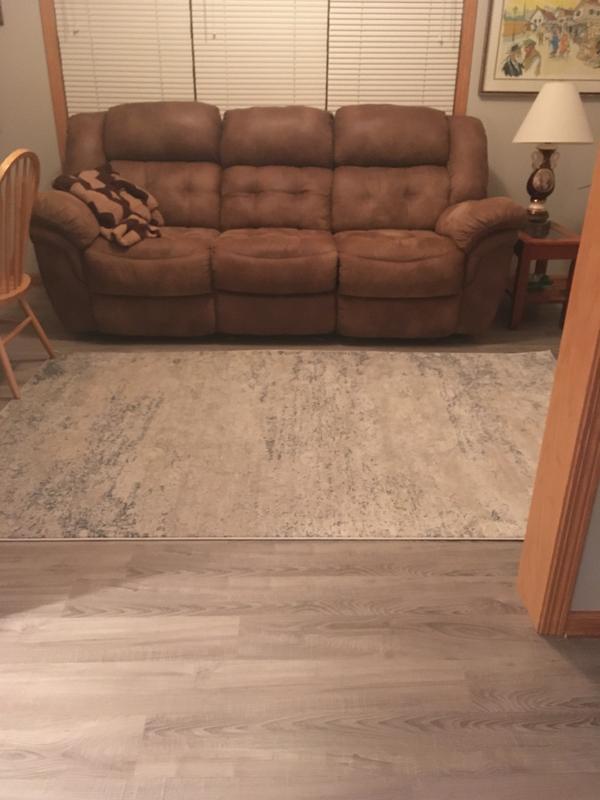 Really liked this rug. Good color, pretty neutral but with a bit of blue to add color. The pattern is also more evident than in the picture, which is nice (but still fairly subtle). Struggled a bit with the corners staying down, but after putting a bit of weight, they straightened out