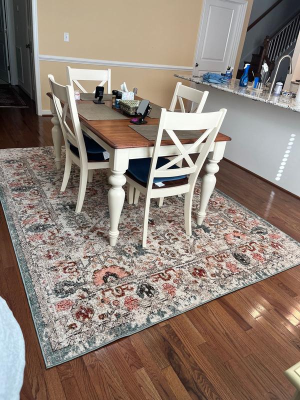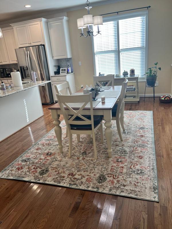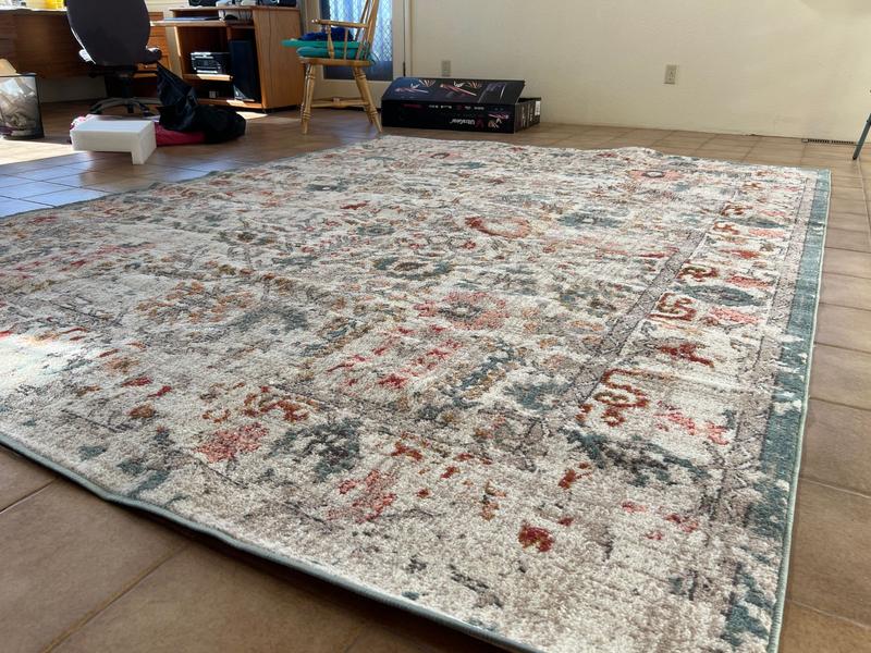 Colors and pattern of the rug are great... but it doesn’t lay flat. It appears that it was not woven evenly. It’s been laying on the tile floor for 3 days. If this doesn’t resolve, I will be returning it. Also I was surprised by how thin the rug is. Seems very cheaply made to me.