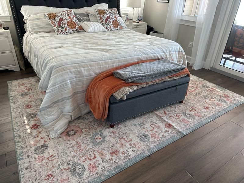 I only gave it 3 stars because it came folded in half and when we laid it there were large bubbles even after having it down for 2 weeks. Company gave instructions to lay flat on drive in hot sun. Did that and solved the problem so I do love the rug it was just a pain to mess with because of the size and stiff backing. The sun did soften the backing which helped much.