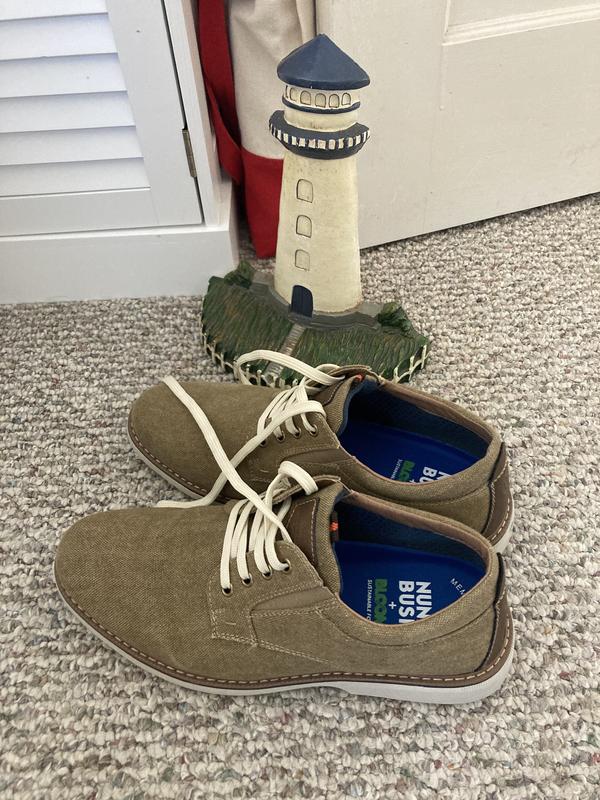 Online, the Nunn Bush Otto Canvas Plain Toe Oxford is on par with current trends - it looks stylish for a casual dress shoe. It also purports to have a more cushioned ride than similar shoes. At home, I was disappointed with the quality and fee. The canvas feels rigid and thin, almost like cardboard, the shoelaces were too sporty for the shoe and the material did not feel sturdy enough. The supposed cushioning was a little thin. All in all, at its price point, perhaps this level of build is where the consumer can expect it to perform, and where the manufacturer meets its supply and demand. I returned the shoe.