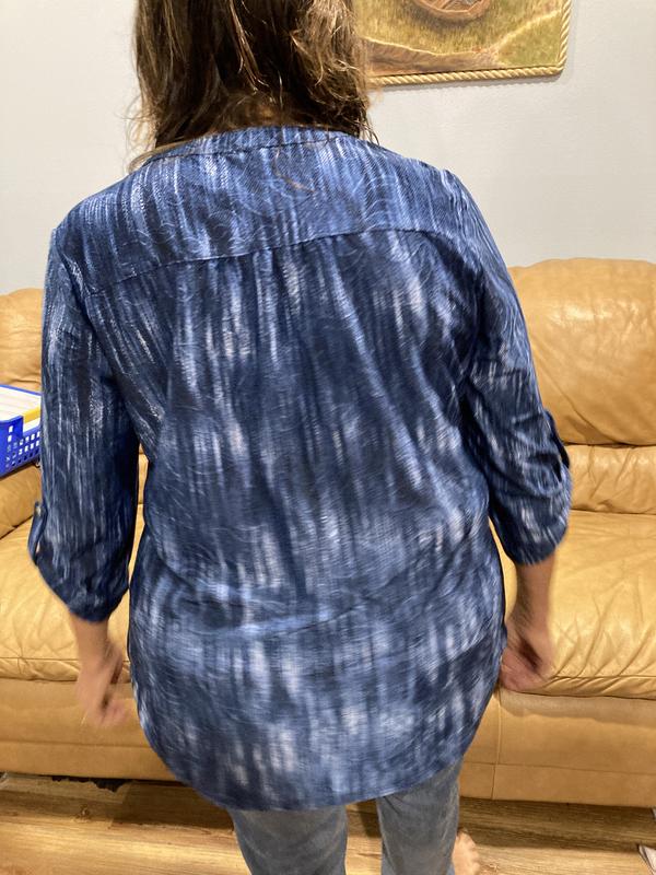 I bought this NY Collection blouse in pink about 4 months ago and received many compliments on it. When I saw it on sale I decided to buy it in blue. They are so comfortable to wear