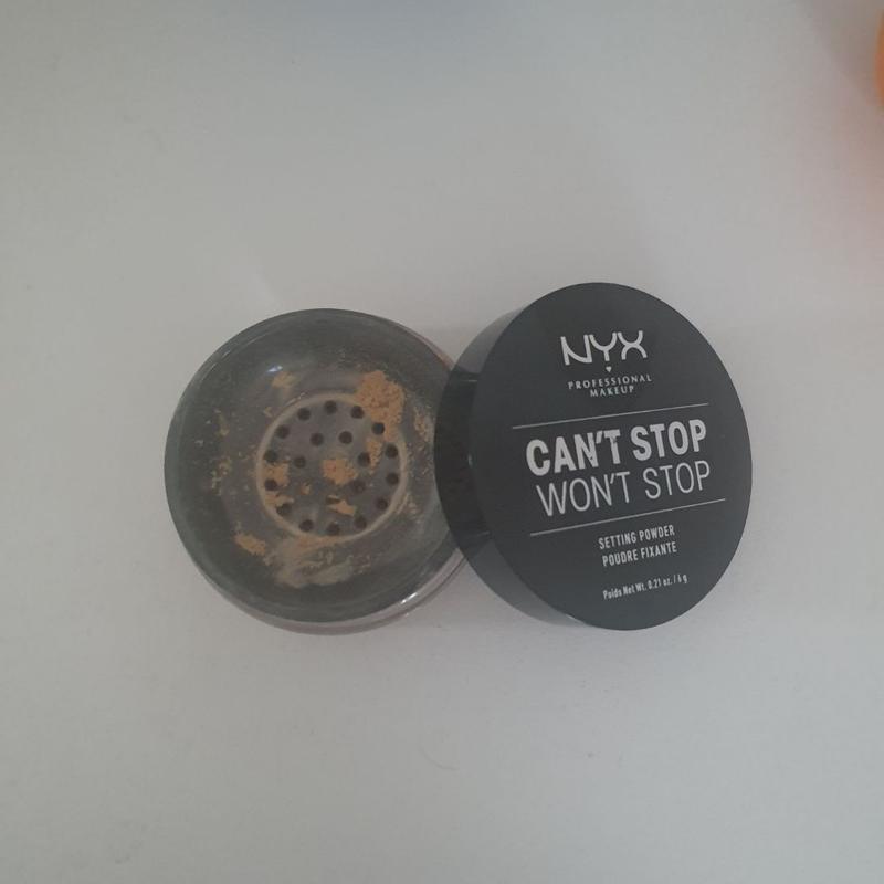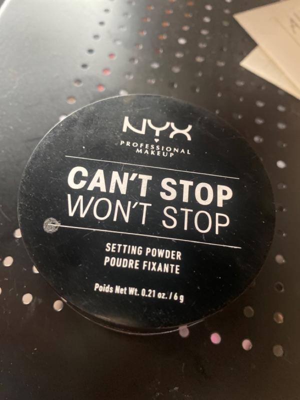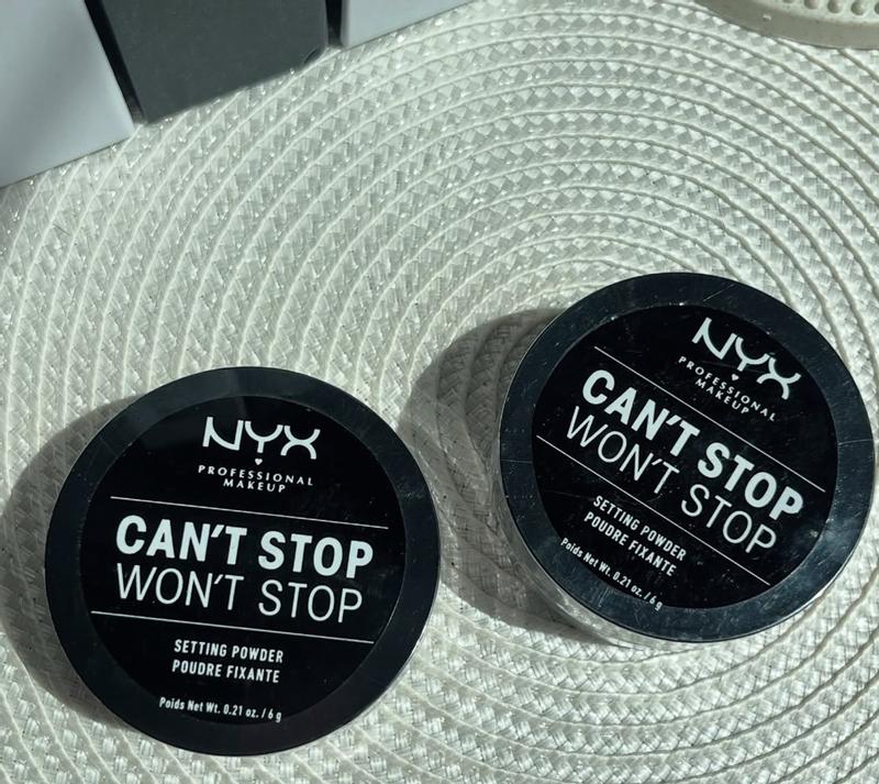 ⭐️⭐️⭐️⭐️⭐️ The NYX Can’t Stop Won’t Stop Setting Powder is lightweight, mattifies well, and keeps makeup in place all day. Doesn’t look cakey and feels comfortable on the skin. Great value for the price!