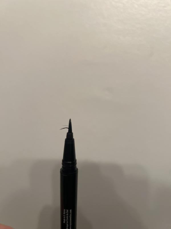I love that the black is a deep black but I don’t love the top of this pen. I found it hard to use but I just loved the color it gave off so much. It’s easily removed with some soap and water or micellar water which is a plus