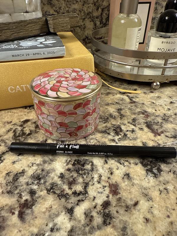 This is an awful eyebrow pencil. It's way too thick and soft. No matter how light a touch I use it looks like I drew my eyebrows on with an oil pastel. My hair color is a cool dark blonde and I try to avoid eyebrow products that are warm toned. This makes my eyebrows look redish which is not what I want! The fluff end is a dense brush and instead of softening the brow it just spreads the color around. I've tried and tried to make this product work but it's just not it. I love this brand but this product is a bust.