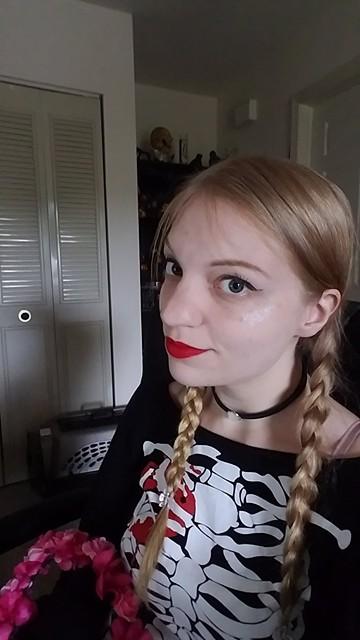 The lip color is a natural nude, very coral-ly but lovely on my pale skin. It's a comfortable waterproof matte. I can confirm that it is matte: it has about a three minute dry-down. As for waterproof, when my drink spilled down my chin the lipstick definitely did not run. The shape of the bullet was interesting, but it is not a long-lasting shape as normal wear will bring it to whatever shape you wear your bullet into. The clear plastic section on the cap of the product displays the color, which I do adore for ease of picking out a lippie in the morning.