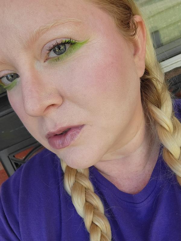 I got this in purple + green and the color is gorgeous! It fades to a cool pink as well. Long lasting and smooth, love it!