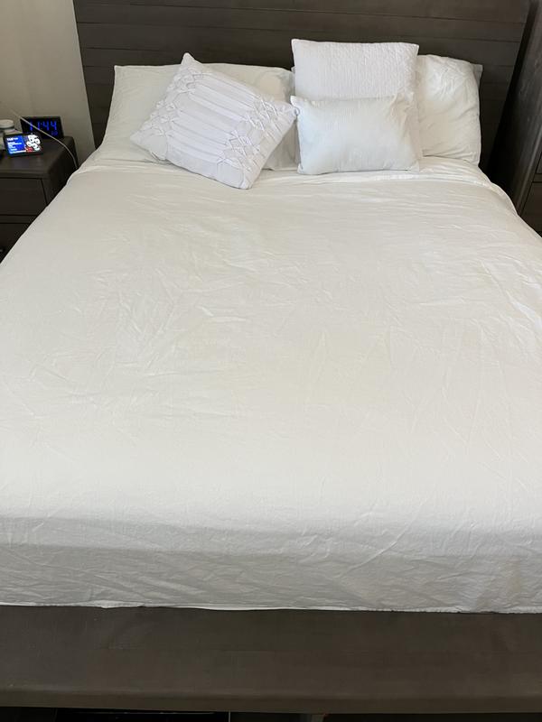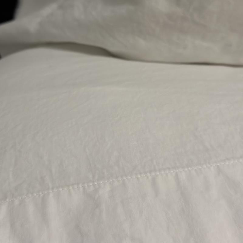 Purchased for our guest room and so far am extremely pleased! Not too heavy and not too thin! Washed for the first time out of the package and was pleased at how they fit the mattress well and weren’t too wrinkled.