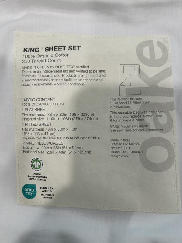 300-Thread Count Organic Cotton 4-Pc. Sheet Set, Queen, Exclusively at Macy’s