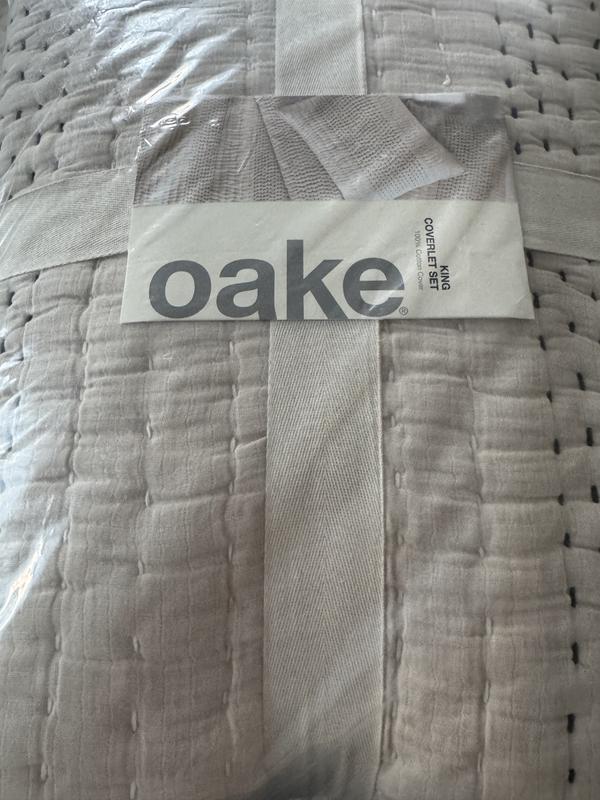 This coverlet with matching pillow shams has a classic and clean look. The color is a wonderful neutral that will match any decor and would compliment pops of color. I really like the cotton. Overall quality is great.