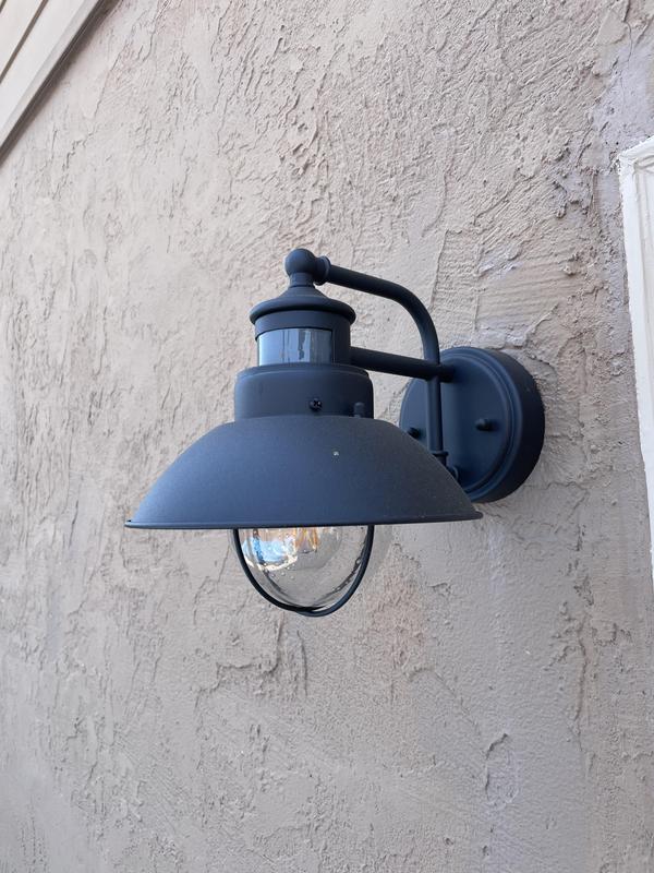 Oberlin Rustic Farmhouse Outdoor Barn Light Fixture Black Dusk to Dawn Motion Sensor 9" Clear Seedy Glass for Exterior Deck House Yard