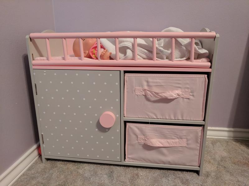 Such a cute and realistic crib for my little toddler to play with his baby dolls. So funny to watch him put babies to "night night". Great feature to have the cabinet dooer and little drawers for him to store little blankets and baby clothes - he is so proud to get baby dolls clothes out all by himself!