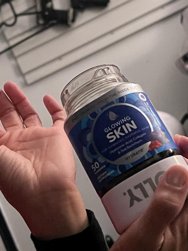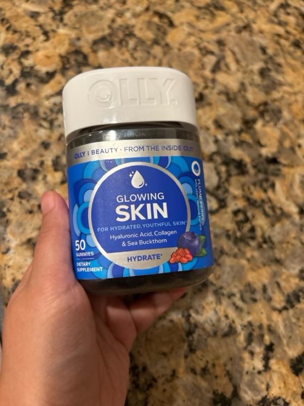 Olly glowing skin gunmies are the first thing I grab in the AM! The packaging is on point for this gummy especially the silver lettering with dark blue background. I love that it contains sea buckthorn (antioxidant benefits) helping to fight the aging process. These gummy taste good blueberry and pomegranate are the best combo. My skin has been beautiful and acne is almost gone!